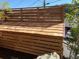 既存のメッシュフェンスを撤去し、レッドシダー材で木製フェンス・縁台を製作。 【工期:約1週間】